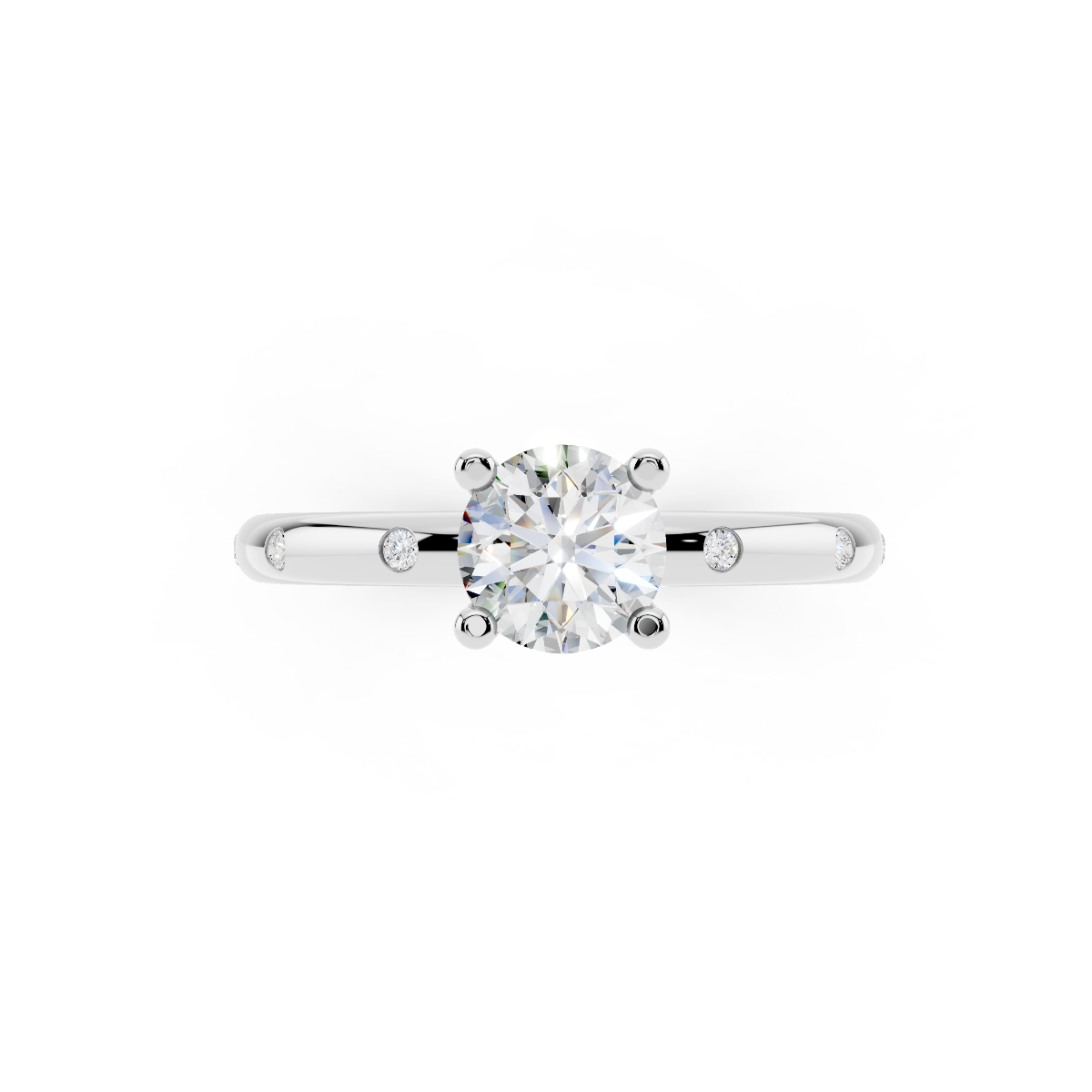Solitario modello Valentino, in oro bianco 18 karati, con uno splendido diamante taglio brillante di 0,75 carati.