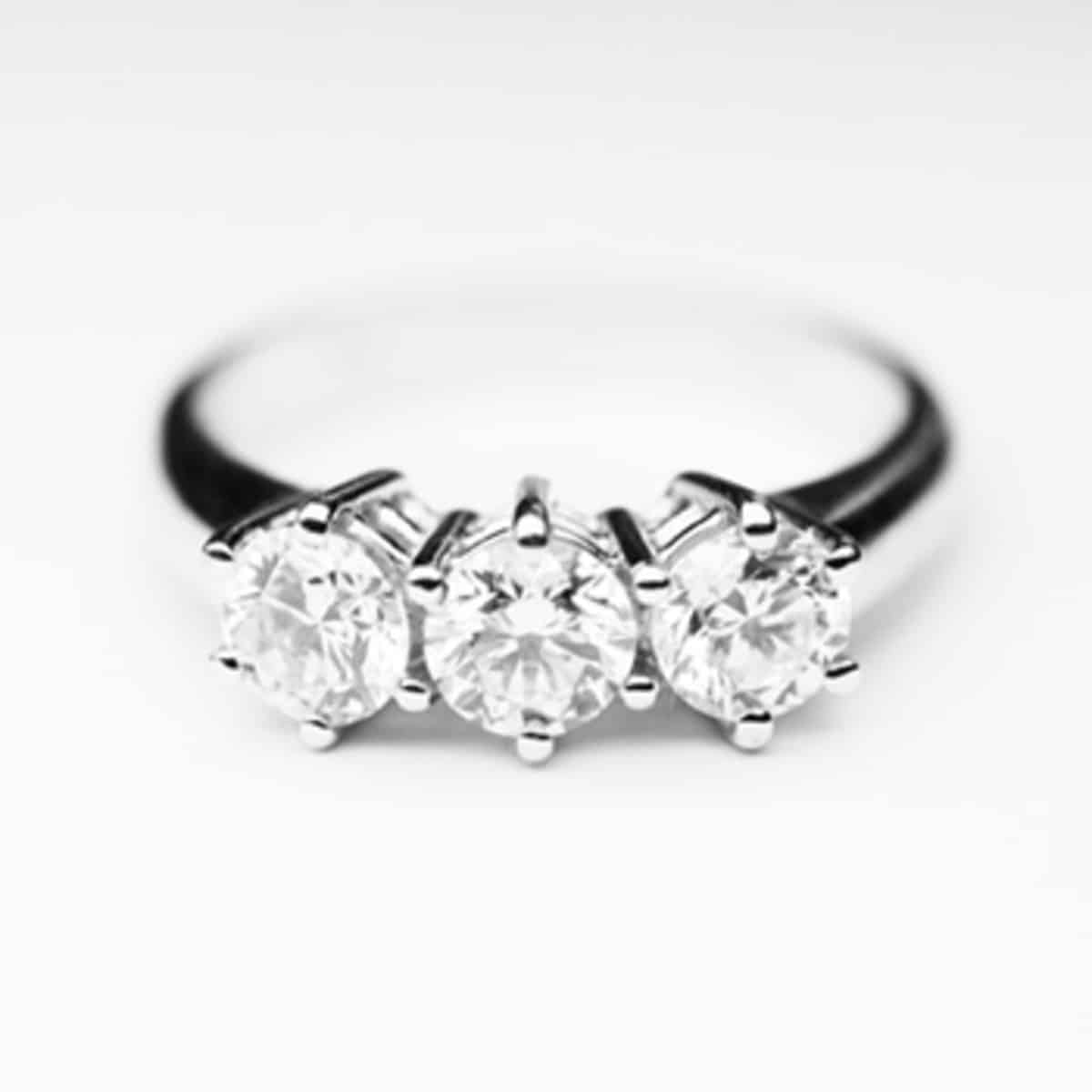 Caratura totale 1,35 carati, un Trilogy di quasi un carato e mezzo, composto da 3 luminosissimi diamanti di 0,45 caratiย cadauno, in sintesi รจ come indossare 3 anelli solitario di notevole grandezza..