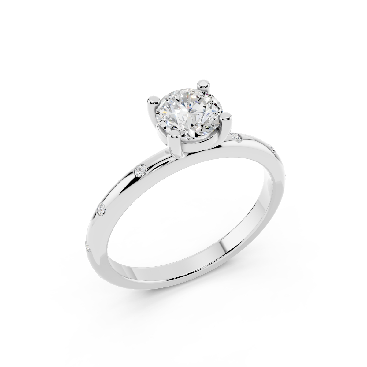 Solitario modello Valentino, in oro bianco 18 karati, con uno splendido diamante taglio brillante di 0,75 carati.