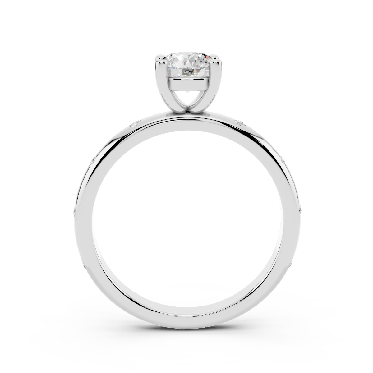 In oro bianco 18 karati con un diamante Solitario taglio brillante eccezionale, con caratteristiche fisiche proprie dei diamanti utilizzati in alta gioielleria: Colore F (bianco extra superiore) purezza VVS1 (purissimo) proporzioni del taglio “excellent“.