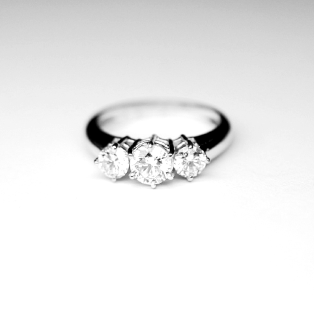 Anello Trilogy di Fidanzamento in oro bianco 18 karati (750) con 3 diamanti naturali taglio brillante di altissima qualitร : 0.40 carati il diamante centrale e 0.20 carati ognuno dei due diamanti laterali..