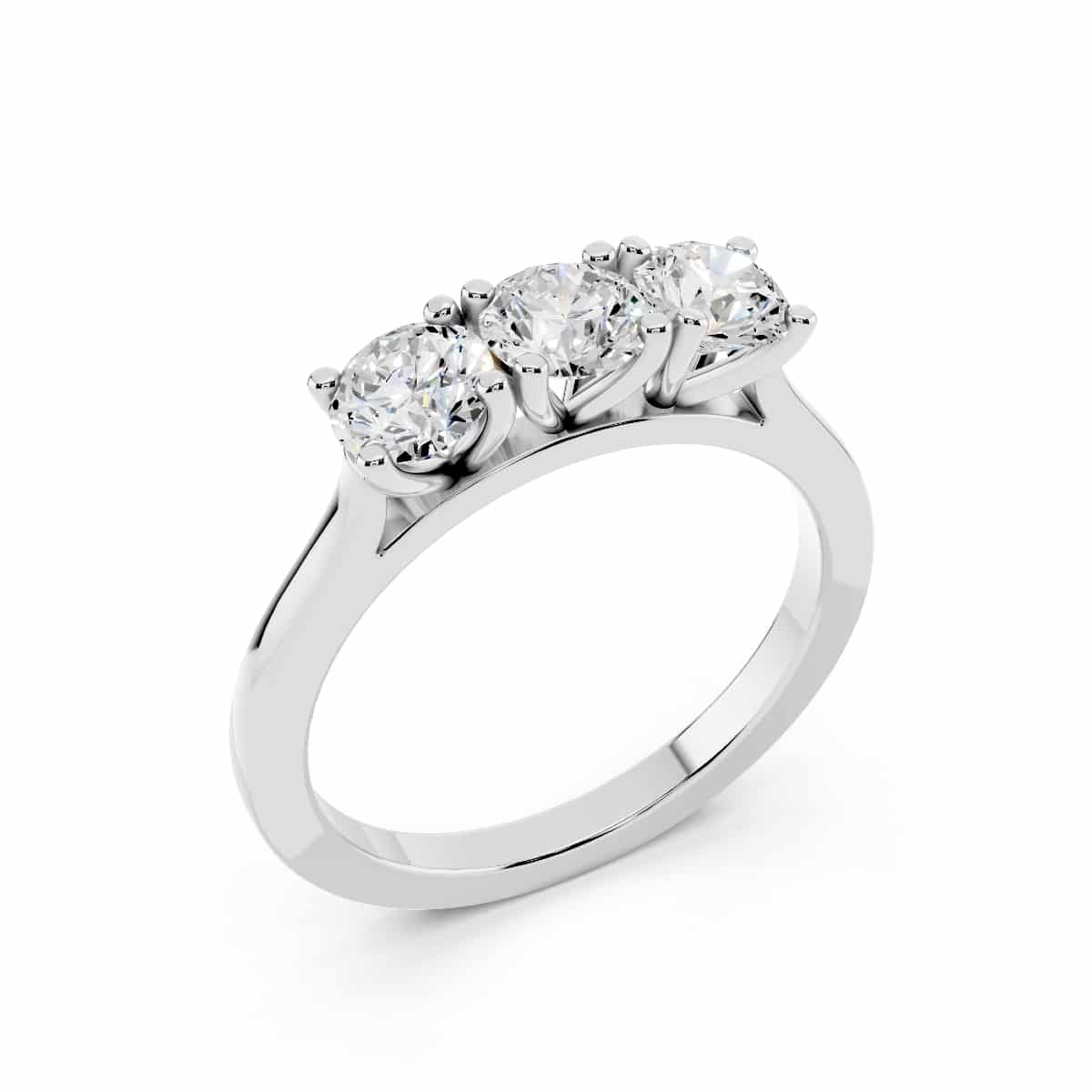 Anello Trilogy in Oro Bianco 18 karati (750) con tre diamanti naturali taglio brillante colore F purezza VS1.