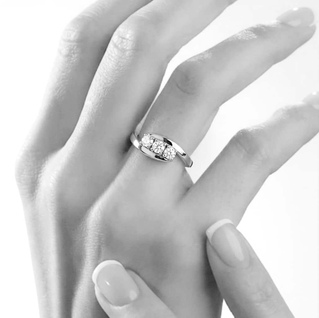 Anello Trilogy con diamanti certificati e garantiti dal nostro laboratorio di produzione.