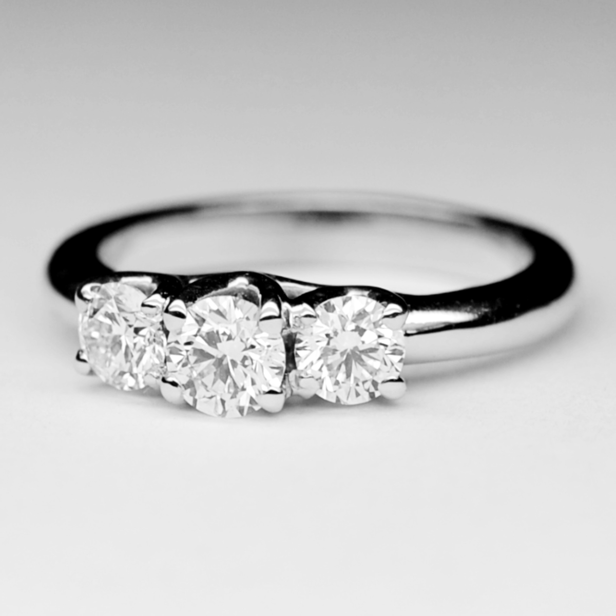 I tre diamanti hanno una caratura totale di 1.10 carati (Diamante centrale di 0,50 carati e i laterali di 0,30 carati l’uno)