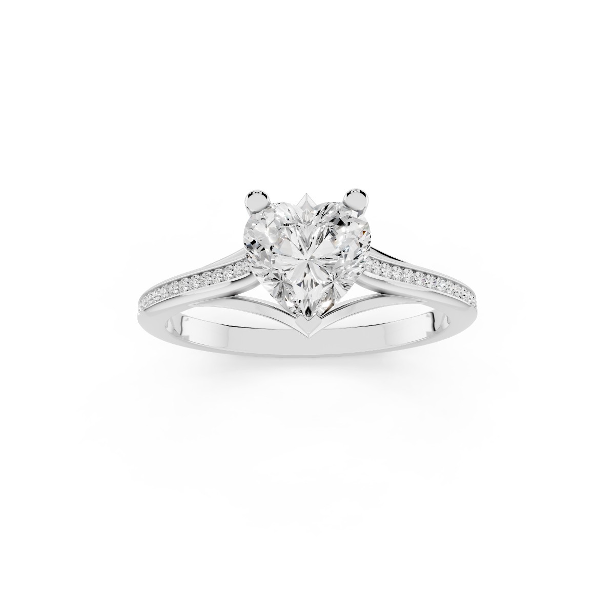 Anello con diamante naturale taglio Cuore di 1 carato F-VVS1 con 0.20 carati di diamanti laterali.