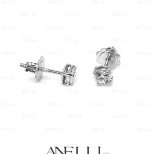 Orecchini modello punto luce con struttura classica a 4 griffe in oro bianco 18 karati.