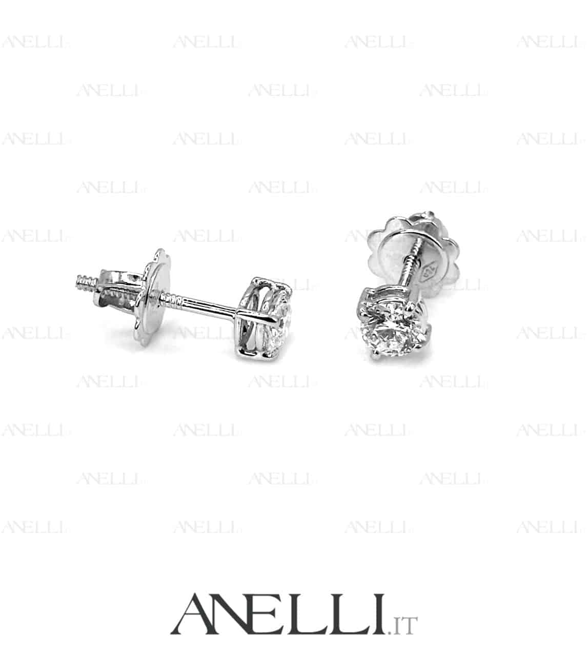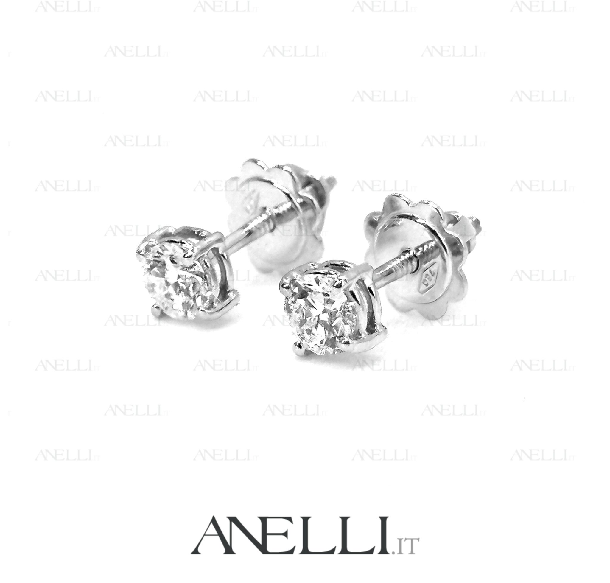 Orecchini in Oro Bianco 18 karati con 2 diamanti taglio brillante di 0.30 carati l’uno (totale 0.60 carati) con il massimo del colore esistente per un diamante “D” e purezza SI1 (Buona qualitร di purezza, imperfezioni visibili solo con una lente da orefice da un occhio esperto)