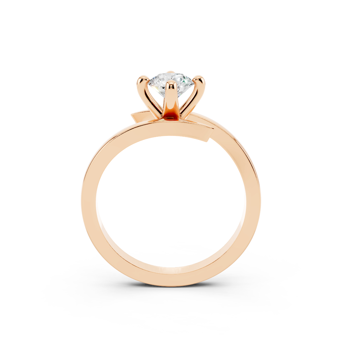 Anello con diamante solitario caratterizzato dal suo castone a 6 griffe e dalla struttura a “fede” perchรจ il gambo richiama molto i lineamenti di una fede classica.