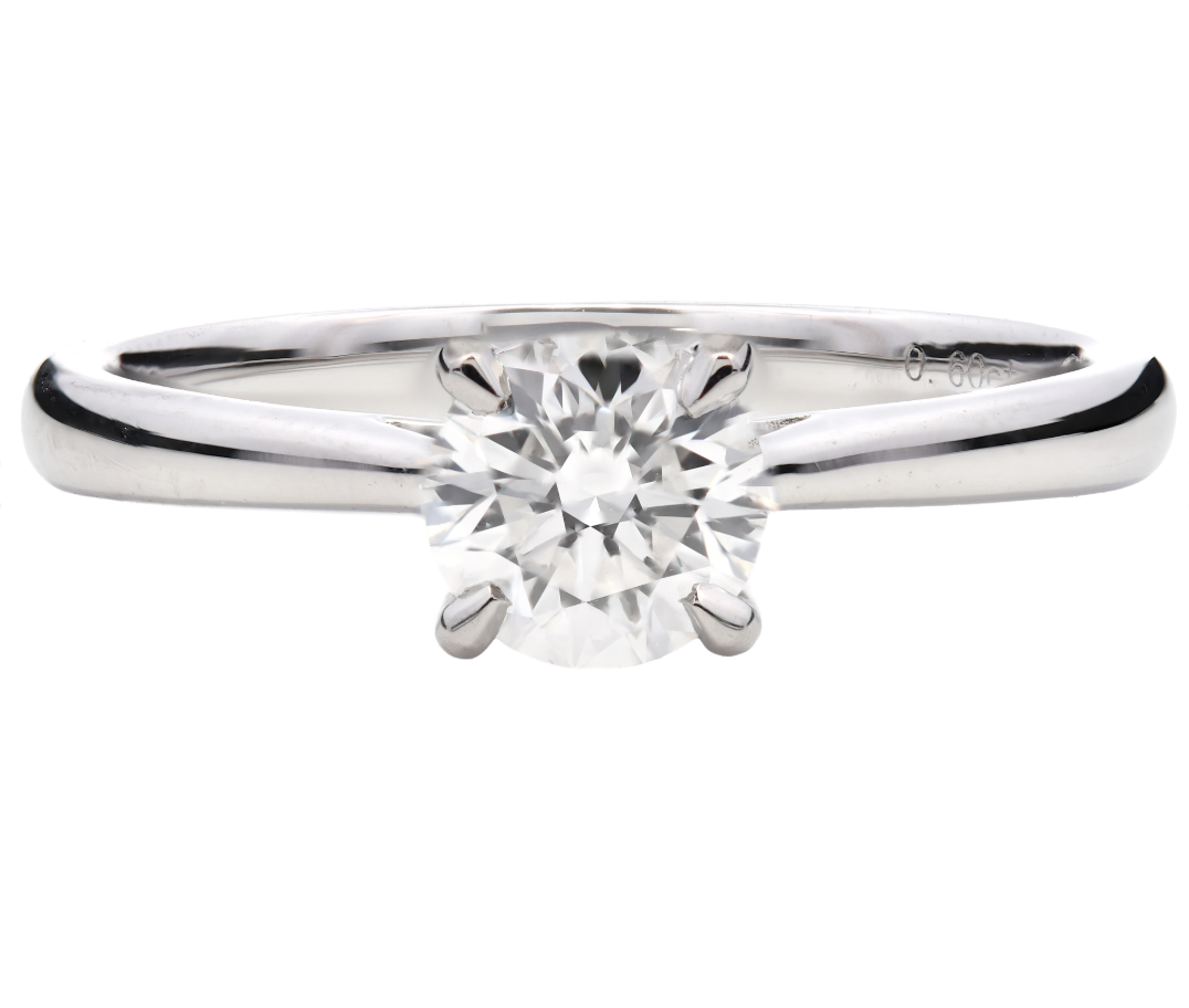Anello solitario da fidanzamento con diamante taglio brillante di 0.60 carati colore F purezza VS1.