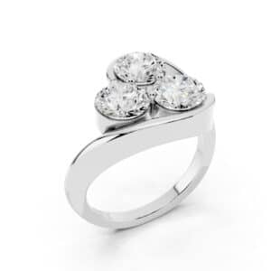 Un anello trilogy a forma di fiore: tre diamanti naturali taglio brillante inseriti a regola d’arte in una struttura ad “abbraccio” che rende questo gioiello ideale per donne che amano anelli dal grande impatto visivo.
