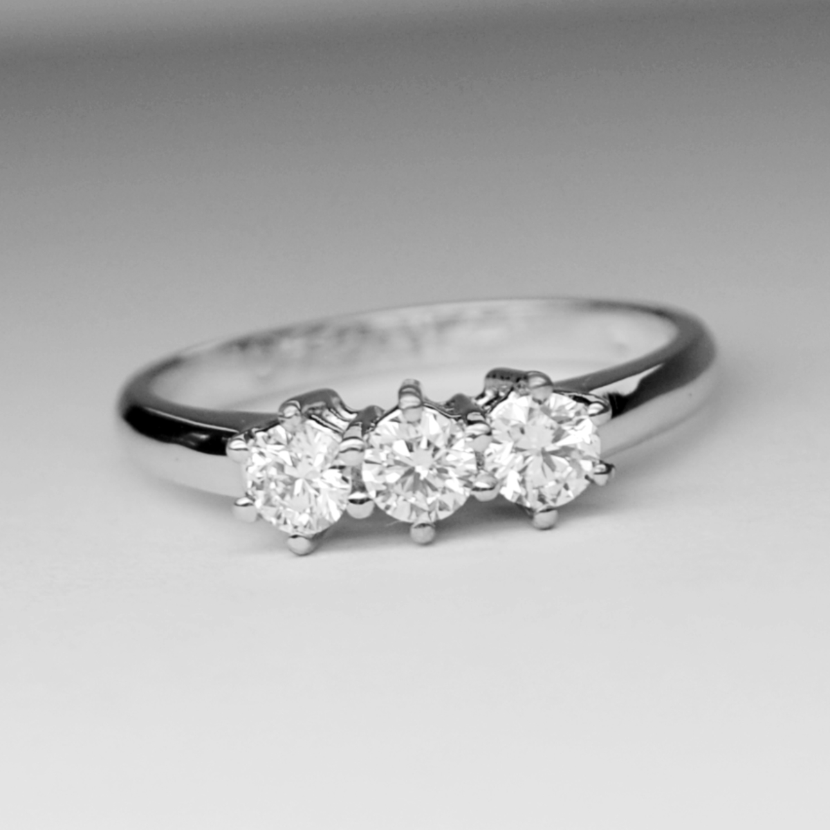 Anello Trilogy con 3 Diamanti. Oro bianco 18 karati (750) diamanti naturali taglio brillante colore F purezza IF, caratura totale 0.60 carati.