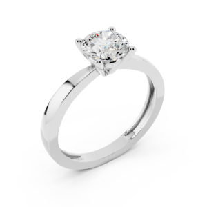 Anello Solitario di fidanzamento con struttura classica a 4 griffe in Oro Bianco 18 karati (750) con incastonato un fantastico diamante naturale taglio brillante di un carato colore D purezza VS1
