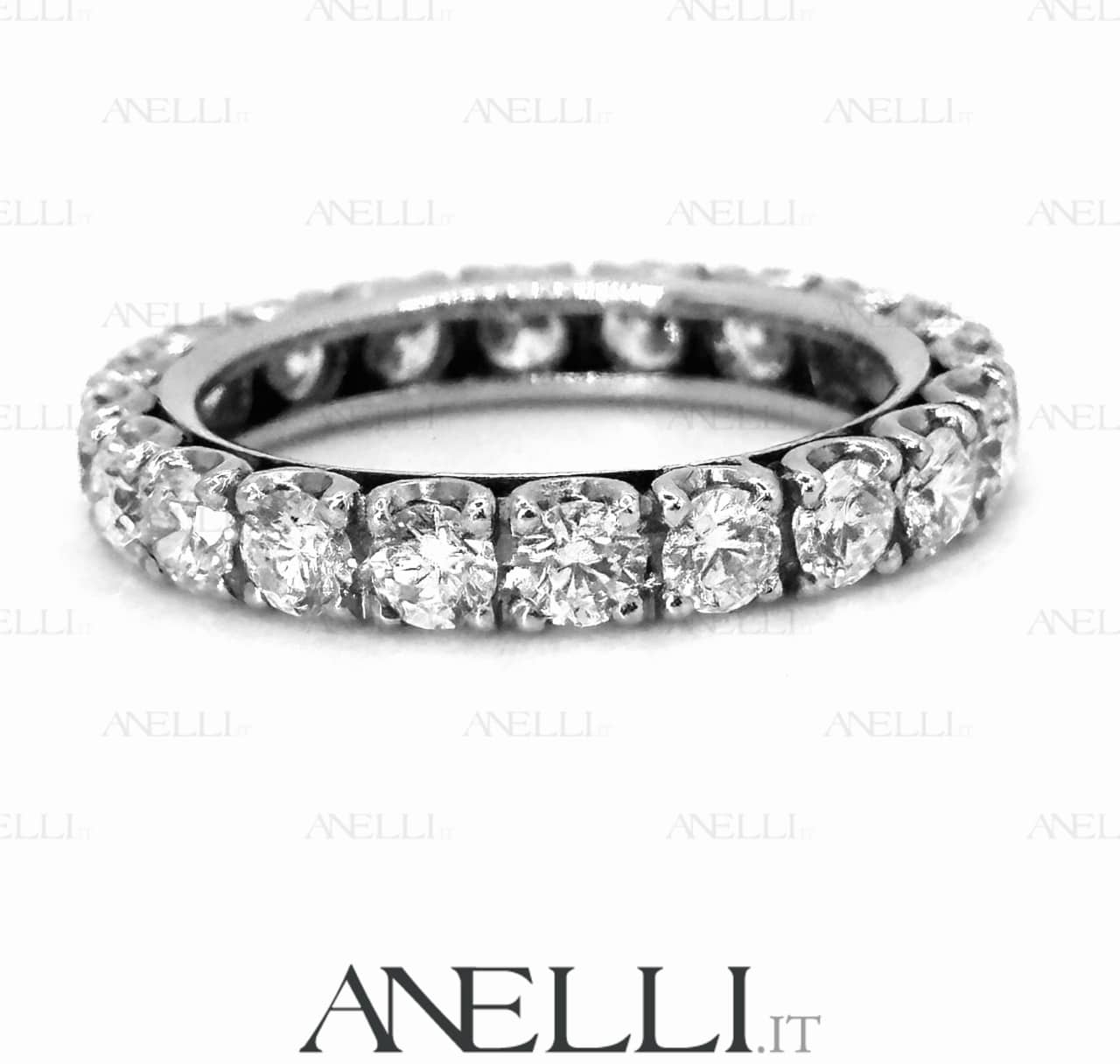 Il regalo perfetto per l’anniversario di matrimonio, la splendida fedina a giro di diamanti taglio brillante.. Viene realizzata a mano in base alla misura del dito della fortunata che riceverร il regalo, quindi ogni modello realizzato รจ unico e Made in Italy al 100%.