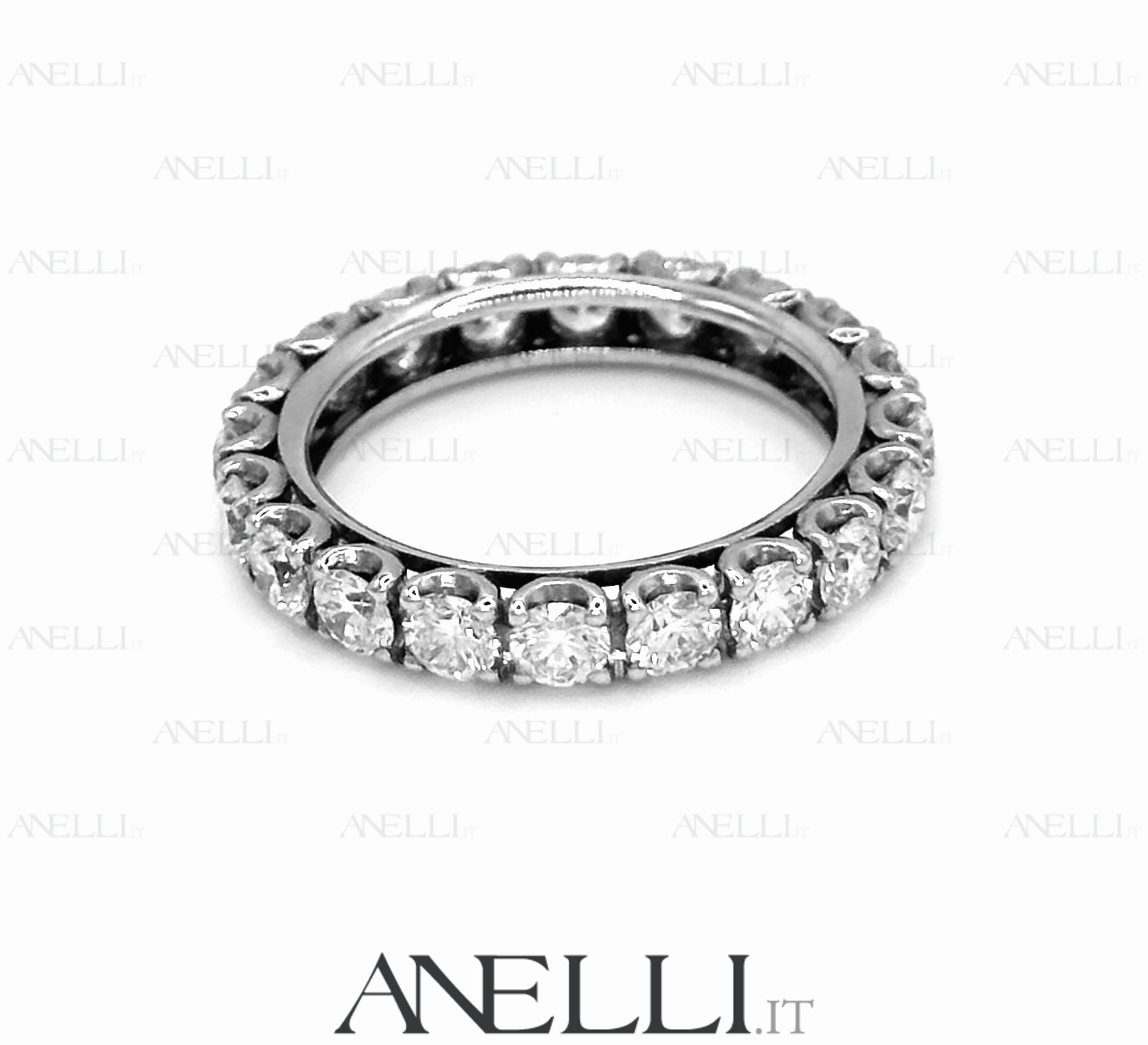 I diamanti di questa fedina a giro sono colore D purezza VVS1: sono diamanti di altissima qualità , una rarità che dona una grandissima lucentezza.