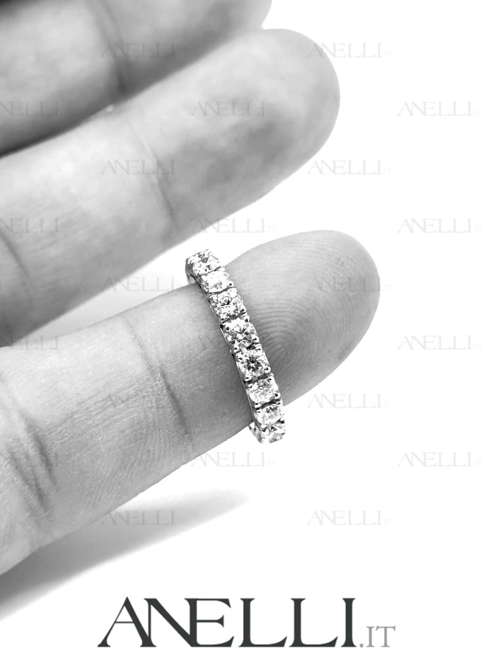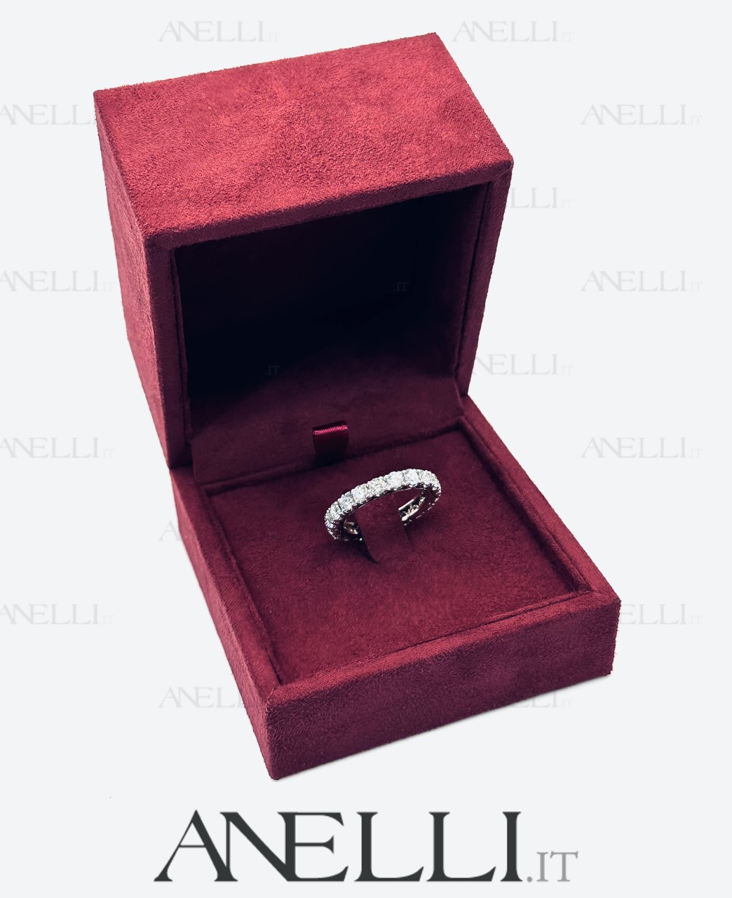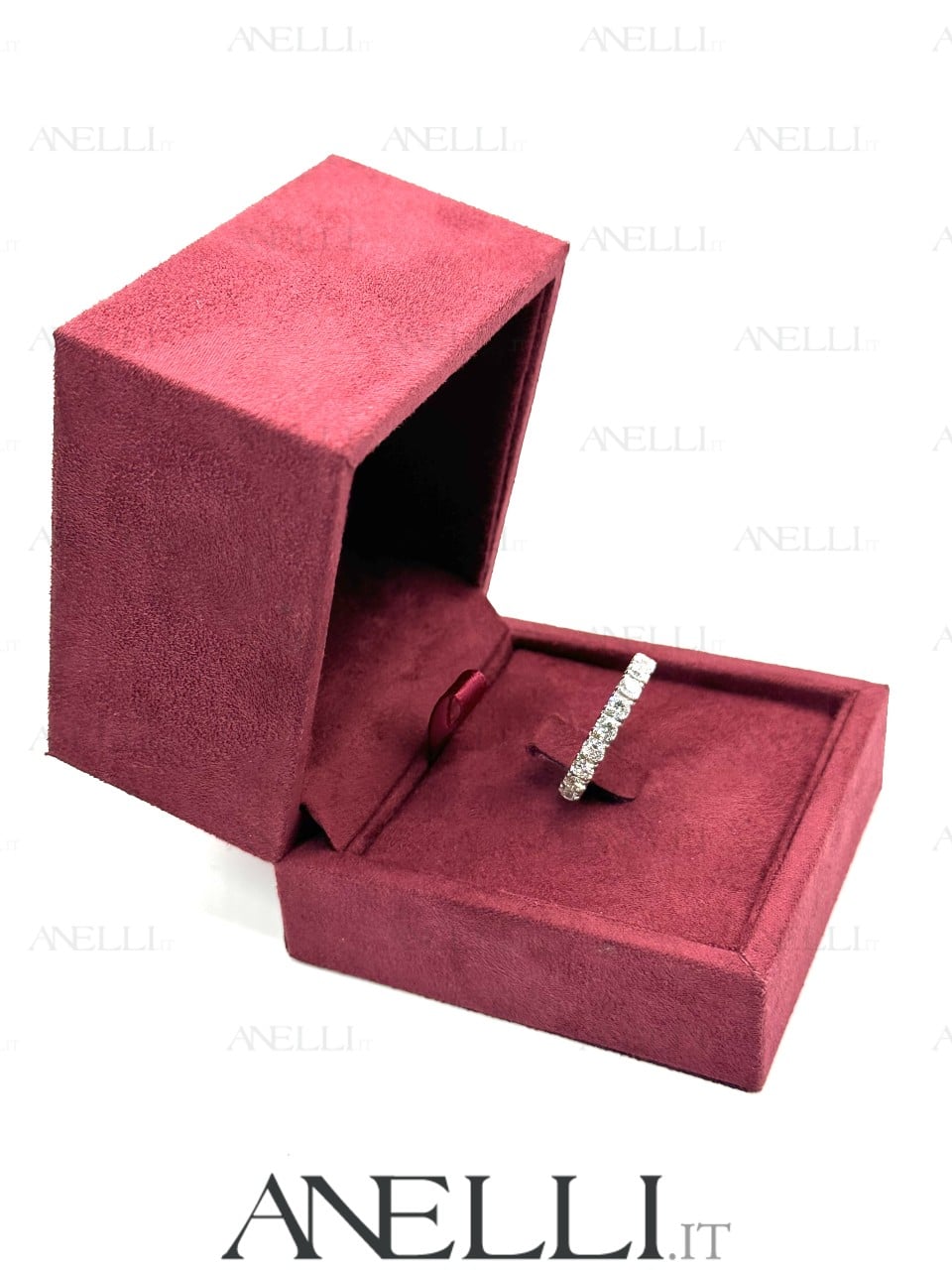 Il regalo perfetto per l’anniversario di matrimonio, la splendida fedina a giro di diamanti taglio brillante.. Viene realizzata a mano in base alla misura del dito della fortunata che riceverร il regalo, quindi ogni modello realizzato รจ unico e Made in Italy al 100%.