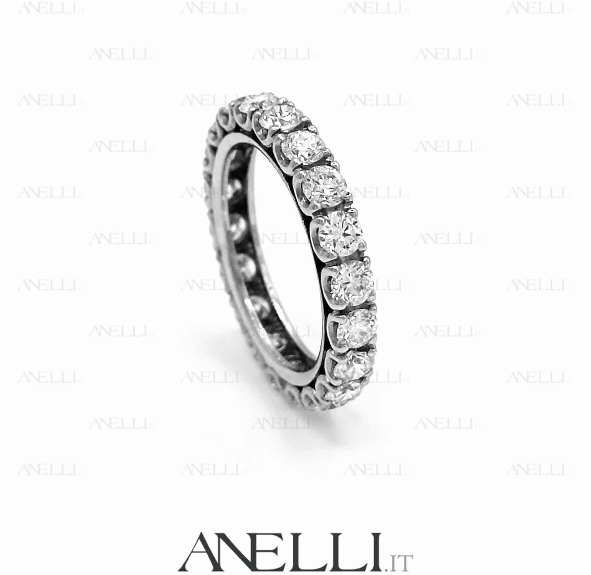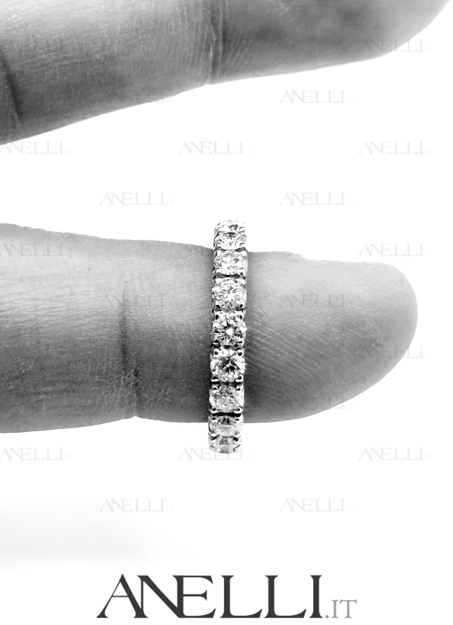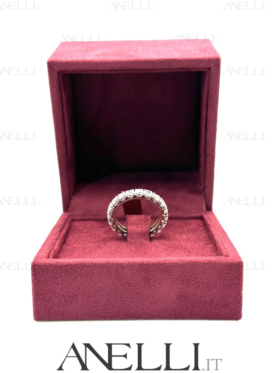 Il regalo perfetto per l’anniversario di matrimonio, la splendida fedina a giro di diamanti taglio brillante.. Viene realizzata a mano in base alla misura del dito della fortunata che riceverร il regalo, quindi ogni modello realizzato รจ unico e Made in Italy al 100%.