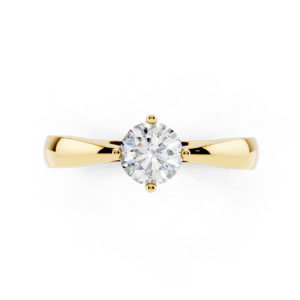 Anello Solitario di fidanzamento con struttura classica a 4 griffe in Oro Giallo 18 karati (750) con incastonato un magnifico diamante naturale taglio brillante di 0,50 carati (mezzo carato) colore D purezza VS1. L’oro giallo negli ultimi anni è tornato molto di moda, ideale da accostare ad una fede matrimoniale..