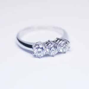 Anello Trilogy con 1 carato totale di diamanti colore G purezza VVS1. Struttura classica in Oro bianco 18 karati – Oro 750.
